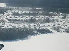 The Old Crow Flats and basin was one of the areas in Canada untouched by glaciations during the Pleistocene Ice ages, thus it served as a pathway and refuge for ice age plants and animals.[54] The area holds evidence of early human habitation in Canada dating from about 12,000.[55] Fossils from the area include some never accounted for in North America, such as hyenas and large camels.[56] Bluefish Caves is an archaeological site in Yukon, Canada from which a specimen of apparently human-worked mammoth bone has been radiocarbon dated to 12,000 years ago.[55]