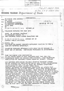 India responded to the covert activity by announcing rewards for captured Pakistani spies or paratroopers.[113] Meanwhile, in Pakistan, rumors spread that India had retaliated with its own covert operations, sending commandos deep into Pakistan territory,[111] but these rumors were later determined to be unfounded.[114]