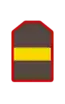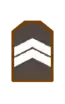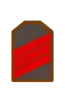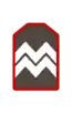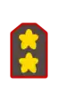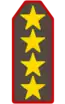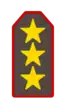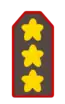 Ceremonial and service uniform are equipped with gorget paches (officially called "Monogram"). Higher officers (Brigadier General above) wear red while the rest wear dark brown.