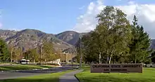 Elevations range from 11,499 ft (3,505 m) at the top of the San Gorgonio Mountain to −220 ft (−67 m) at the Salton Sea. The San Bernardino mountains are home to the San Bernardino National Forest and the resort communities of Big Bear Lake, Lake Arrowhead, and Running Springs. The Santa Ana River extends from Mt. San Gorgonio for nearly 100 miles (160 km) through San Bernardino, Riverside, and Orange counties before it eventually spills into the Pacific Ocean at Newport Beach and Huntington Beach. While temperatures are generally cool to cold in the mountains, it can get hot in the valleys. In the desert resort of Palm Springs, near Joshua Tree National Park, summer temperatures can reach well over 110 °F (43 °C).