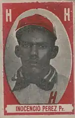 Inocencio Pérez (born 1870 - death date unknown) was a Cuban baseball pitcher in the Cuban League and Negro leagues. He played from 1904 to 1907 with several clubs, including Almendares club, Habana, the Cuban Stars (West), and the All Cubans.