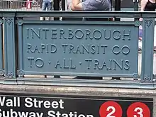 The Interborough Rapid Transit Company (IRT) was the private operator of the original underground New York City Subway line that opened in 1904, as well as earlier elevated railways and additional rapid transit lines in New York City.[2] The IRT was purchased by the city in June 1940. The former IRT lines (the numbered routes in the current subway system) are now the A Division or IRT Division of the Subway.