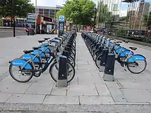 In some cities a public bicycle rental programme allows commuters to take a public bike between the public transport station and a docking station near their origin or destination.