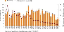 - Motor vehicle crash rate (Motor Vehicle Crashes per million kilometres) for each reporting group and category.