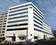 Beck was elected to the Executive Council of the AFL on August 13, 1953, but his election generated a tremendous political battle between AFL President George Meany, who supported his election, and federation vice presidents who felt Beck was corrupt and should not be elected to the post.[56][57] Beck was the first Teamster president to negotiate a nationwide master contract and a national grievance arbitration plan,[58] established organizing drives in the Deep South[59] and the East,[60] and built the current Teamsters headquarters (the "Marble Palace") in Washington, D.C. on Louisiana Avenue NW (across a small plaza from the United States Senate).[61] But his intervention in a construction and a milk strike (both centered on New York City), and refusal to intervene in a Northeastern trucking strike created major political problems for him.[62] Perceiving Beck to be weak, Jimmy Hoffa began challenging Beck on various union decisions and policies in 1956 with an eye to unseating him as General President in the regularly scheduled union elections in 1957.[63]