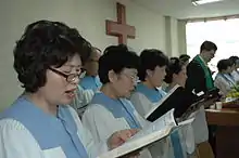 International Worship in English (IWE - pronounced "I" "WE") is a Christian ministry of Young Nak Presbyterian Church in Myeongdong Seoul, South Korea that in English offers traditional worship at 10am and contemporary worship at 3:30pm on Sundays. Weddings, counseling, small group studies, fellowship and retreats are provided for the international community in the greater Seoul area. The ministry is like a church (mega-church) within a church (international church). It was formed on Easter in 1998 by a volunteer pastor, Bill Majors, who, for his efforts, was made an Honorary Citizen of Seoul (2005).[1] Young Nak Presbyterian Church was founded by Rev. Kyung-Chik Han, winner of the 1992 Templeton Prize, in 1945.[2] Rev. Han, who died in 2000, lived to see the foundation of an English-language ministry at his church.