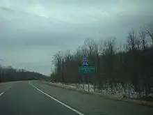 Work on converting the portion of the highway east of Windsor is expected to be far more substantial than the work west of Binghamton.[47] Currently, the only portions up to Interstate standards east of Windsor are between exit 94 (Roscoe) and exit 100 (NY 52), between exits 104 and 106 in Monticello, and between exit 116 (NY 17K) and exits 121–122 (I-84/Crystal Run Road). Aside from numerous minor interchange improvements, major work includes constructing two new interchanges in the mountainous Hale Eddy area, exits 85 and 86, to replace two at-grade intersections, as well as the relocation of driveways in that area, improving curve radii throughout the route, and widening the shoulders on narrow parts of the highway. Work was completed in November 2019 on a redesigned interchange at exit 131, where NY 17 meets I-87 and NY 32.[50] Work is also underway to bring exits 124 and 125 in Goshen up to Interstate standards, which is expected to be completed in spring 2020.[51] There is no timetable for the full completion of the I-86 conversion between NY 79 in Windsor and the Thruway (I-87) in Harriman.