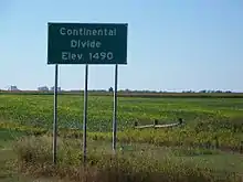 At approximately mile marker 275 on the westbound lanes between Jamestown and Valley City, the highway crosses the Laurentian Continental Divide, at an elevation of 1,490 feet (454 m) above sea level. The rivers that are west of this divide flow south into the Atlantic Ocean from the Gulf of Mexico, while the rivers that are east of the divide flow north into Hudson Bay. The James River, that flows through Jamestown, feeds into the Atlantic Ocean, while the Sheyenne River, that flows through Valley City (36 miles (58 km) east of Jamestown), feeds into Hudson Bay.