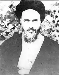 The post-revolutionary leader—Shia cleric Ayatollah Ruhollah Khomeini—first came to political prominence in 1963 when he led opposition to the Shah and his White Revolution. Khomeini was arrested in 1963 after declaring the Shah a "wretched miserable man" who had "embarked on the [path toward] destruction of Islam in Iran."[58] Three days of major riots throughout Iran followed, with 15,000 dead from police fire as reported by opposition sources.[59] However, anti-revolutionary sources conjectured that just 32 were killed.[60]