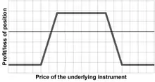 The position is so named because of the shape of the profit/loss graph, which loosely resembles a large-bodied bird, such as a condor. In keeping with this analogy, traders often refer to the inner options collectively as the "body" and the outer options as the "wings". The word iron in the name of this position indicates that, like an iron butterfly, this position is constructed using both calls and puts, by combining a bull put spread with a bear call spread. The combination of these two credit spreads makes the long iron condor (and the long iron butterfly) a credit spread, despite the fact that it is "long." This distinguishes the position from a plain Condor position (and the plain Butterfly), which would be constructed with all calls or all puts, by combining either a bull call spread with a bear call spread or a bull put spread with a bear put spread. Because the long, plain Condor (and Butterfly) combine a debit spread with a credit spread, that overall position is instead entered at a net debit (though usually small).[1]