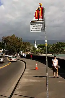 Over time the popularity of the sport of triathlon grew, and the annual race on the Big Island became The Ironman World Championship. In 1983, admission to the race began following a qualification based system, whereby athletes had to obtain entry to the race by competing in another Ironman race and gaining a slot, allocated on a proportional basis. The Hawaii race consists of a swim in the bay of Kailua-Kona, a bike ride across the Hawaiian lava desert to Hāwī and back, and a marathon run along the coast (from Keauhou to Keahole Point and back to Kailua-Kona); finishing on Aliʻi Drive. The most recent Ironman World Championship took place on October 12, 2019 and was won by Jan Frodeno of Germany in 7:51:13 and Anne Haug of Germany in 8:40:10.[21][22]