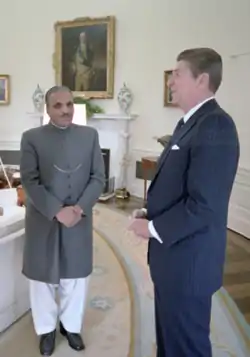 Sharization or Islamization (Urdu: اسلامی حکمرانی) has a long history in Pakistan since its foundation, but it became the primary policy,[1] or "centerpiece"[2] of the government of General Muhammad Zia-ul-Haq, the ruler of Pakistan from 1977 until his death in 1988. Zia has also been called "the person most responsible for turning Pakistan into a global center for political Islam."[3]