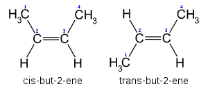This category (EC 5.2) includes enzymes that catalyze the isomerization of cis-trans isomers. Alkenes and cycloalkanes may have cis-trans stereoisomers. These isomers are not distinguished by absolute configuration but rather by the position of substituent groups relative to a plane of reference, as across a double bond or relative to a ring structure. Cis isomers have substituent groups on the same side and trans isomers have groups on opposite sides.[2]