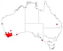 Variety buxifolius grows in swampy areas between Collie, Denmark and Albany[8][9] and var. obovatus has been recorded in sandy loam over laterite in a small area between the Stirling Range, Cape Riche and Bremer Bay.[13][14]