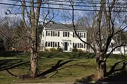 The Israel Whitney House is a historic house in Needham, Massachusetts. It is a 2 1⁄2-story wood-frame house, five bays wide, with a side gable roof and clapboard siding. Its front facade is symmetrical, with a center entrance flanked by sidelight windows and pilasters, and a corniced entablature on top. The house was built in 1830 by Israel Whitney, who had married Mary Fuller, a descendant of one of Needham's early settlers. Whitney had purchased the land on which the house was built in 1829. Whitney was a shoemaker and active in local politics, holding a variety of offices.[2]