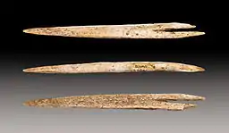 The most common human remains from Isturitz are cranial vaults, which have been cut-marked and modified to create drinking cups ("coupelles"), dating from the Magdalenian (∼15 to 12,000 years BP).[5][6]