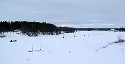 ![]() A snowmobile caravan on the frozen Ivalo River | |