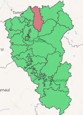 Izhmorsky District (Russian: Ижмо́рский райо́н) is an administrative district (raion), one of the nineteen in Kemerovo Oblast, Russia.[1] As a municipal division, it is incorporated as Izhmorsky Municipal District.[6] It is located in the north of the oblast. The area of the district is 3,580 square kilometers (1,380 sq mi).[2] Its administrative center is the urban locality (an urban-type settlement) of Izhmorsky.[1] Population: 13,517 (2010 Census);[3] 16,476 (2002 Census);[8] 19,025 (1989 Census).[9] The population of the administrative center accounts for 41.5% of the district's total population.[3]
