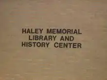 - "Haley Memorial Library and History Center". Archived from the original on 2000-01-23. Retrieved 2015-04-13.