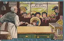 In April 2020 an original enamel advertising sign with the distinctive "five boys" trademark design was featured on BBC's Antiques Roadshow and was valued at £1,000-£1,500.[12] The boy featured in the design, Lindsay Poulton, had been photographed in 1886 by his father who, for the first image, soaked a cloth in ammonia and wrapped it round the boy's neck to make him cry. Poulton, in his eighties, related this story to Fry's employees when he was given a tour of the Bristol factory.[13]