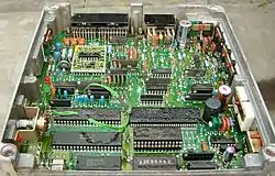Mid 1980s JECS LH-Jetronic ECU. 40 pin IC bottom left is Hitachi Motorola 6800 clone, 28 pin IC (socketed) immediately right is 16kB ROM containing maps. JECS logo bottom left.