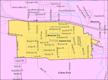 In 1941 Frank Sharp established a subdivision which filled with shipyard workers and workers at nearby steel mills and war plants. Jacinto City incorporated in 1947 with nearly 3,800 residents; its first mayor was Inch Handler.[6] Because of the 1947 incorporation, Houston did not incorporate Jacinto City's territory into its city limits, while Houston annexed surrounding areas that were unincorporated.[7] The town still serves as a bedroom community for local industry. In the 1950s the city opened a city hall and recreational facilities. By 1960 the city had 9,500 people and by 1964 the city had 11,500 people. In 1966 the city had seventeen churches, two schools, one hospital, one bank, and one library. A waste-water facility funded by the Environmental Protection Agency opened in 1972; the Handbook of Texas stated that this may be due to complaints from residents about chemical vapors in 1969. In 1990 the city had 9,343 people.[6]