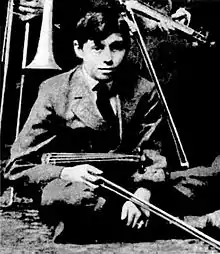 Benny was born Benjamin Kubelsky in Chicago on February 14, 1894, and grew up in nearby Waukegan.[2]:6 He was the son of Jewish immigrants Meyer Kubelsky (1864–1946)[3] and Emma Sachs Kubelsky (1869–1917), sometimes called "Naomi."[4] Meyer was a saloon owner and later a haberdasher who had emigrated to America from Poland.[5][6][7][8][9] Emma had emigrated from Lithuania. Benny began studying violin, an instrument that became his trademark, at the age of 6, his parents hoping for him to become a professional violinist. He loved the instrument, but hated practice. His music teacher was Otto Graham Sr., a neighbor and father of football player Otto Graham. At 14, Benny was playing in dance bands and his high school orchestra. He was a dreamer and poor at his studies, and was ultimately expelled from high school. He later did poorly in business school and at attempts to join his father's business. In 1911, he began playing the violin in local vaudeville theaters for $7.50 a week (about $210 in 2020 dollars).[2]:11 He was joined on the circuit by Ned Miller, a young composer and singer.[10]