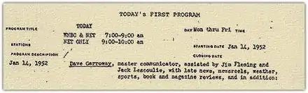 - The Today Show: An Anecdotal History, by Gerry Davis; pg. 31