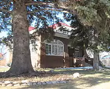The 1 1/2 story brick house at 615 South Third Street was built for Alexander (Scotty) Johnston, a successful sheep rancher, in 1917. The structure is situated on three lots lined with large cottonwood trees. Red brick covers the building on all sides, with a partial foundation visible at the bottom of the exterior walls and a water table of brown brick runs around the entire structure about two feet above grade. The roof is gable-fronted, with two projecting side dormers. A full-length porch built on the front of the building features a hipped roof supported by boxed columns. The porch railings and all the home's windowsills (with the exception of two on the back porch) are sandstone. A second porch on the back of the house was originally screened in but was winterized with the addition of two casement windows in 1999. A detached garage is set slightly behind the structure.