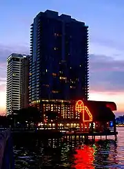 Water taxi service in Downtown Jacksonville began in 1987, with the opening of the Jacksonville Landing, a riverfront shopping and entertainment center.[1] In the early years a variety of companies ran water taxis out of the Landing, with the City of Jacksonville allowing any operator who passed the minimum U.S. Coast Guard safety regulations to start a water taxi business. This led to fierce competition during peak times and inconsistent service, with captains ignoring city regulations on routes and use of the stops to fight each other for customers. Eventually, the Jacksonville City Council Waterways Commission stepped to demand improved service. Ultimately, in 2002, the City of Jacksonville adopted new regulations governing the Jacksonville Water Taxi, awarding a contract to a single operator who adheres to a consistent route and schedule.[2][3]