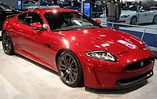 Unveiled at the 2011 Geneva Motor Show, the XKR-S is a high performance version of the XKR. Notable changes over the standard XKR include a supercharged AJ-V8 Gen III R direct-injection V8 engine having a maximum power output of 550 PS (405 kW; 542 hp) at 6,000 to 6,500 rpm and 680 N⋅m (502 lbf⋅ft) of torque at 2,500 to 5,500 rpm, an increased top speed of 300 km/h (186 mph), active sports exhaust, a bespoke suspension system, 16-way adjustable memory sports seats with carbon fibre effect leather, reprogrammed Adaptive Dynamics, 20-inch Vulcan wheels and Pirelli P-Zero tyres along with Jaguar's High Performance Braking System.[10]