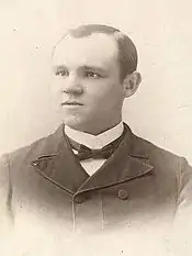 At the age of twelve, he graduated from elementary school, passing the Oxford Diocesan Association exam for a second-class certificate. Talmage received a distinguished primary education and was named an Oxford Diocesan Prize Scholar after six years of schooling.[3][1]:501–502 He was baptized a member of LDS Church at age 10 on 15 June 1873,[3] but due to local hostilities toward Latter-day Saints, he was baptized in secret at night.[4] The same year he accidentally pierced his younger brother's (Albert) eye with a digging fork, blinding him.[1]:506–507 He moved with his family to Provo, Utah Territory, in 1876.[5]:9–10 In Provo, he studied the Normal Course at BYA, with Karl G. Maeser as one of his teachers; he graduated in 1879 at the age of seventeen.[5]:11–12 He became an instructor at BYA while continuing to study.[3] In 1881, Talmage became the first graduate from the Scientific Department at BYA and the first student from BYA to receive a college degree.[6]:3