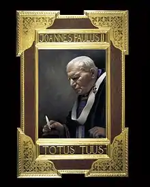 In 2005 A portrait of Pope John Paul II commissioned by The Bishop of Nottingham, the Rt Rev. Malcolm McMahon, was completed. The portrait now hangs in the Lady Chapel at St Barnabas' Cathedral in Nottingham, and an identical copy tours the country's parishes on request.[13]