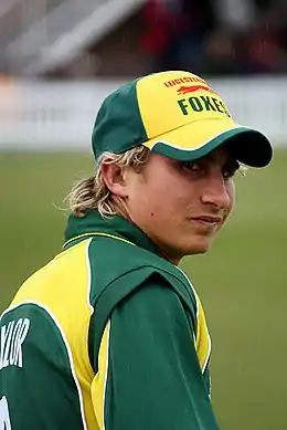 James William Arthur Taylor (born 6 January 1990) is a former English cricketer who played for Nottinghamshire County Cricket Club.[2] A right-handed batsman and occasional right-arm leg break bowler, Taylor made his debut in first-class cricket in 2008 for Leicestershire and made major impressions in his first county seasons. He is noted as being a fine fielder in the covers. He became the youngest Leicestershire one-day centurion and first-class double centurion. In 2009, Taylor also became the youngest player in Leicestershire's history to score 1,000 championship runs in a season.