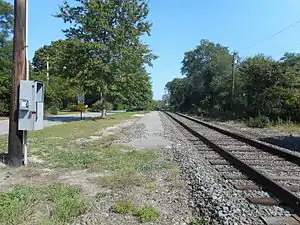 Jamesport sold no tickets during the year 1957. Since the railroad needed approval from the PSC, a hearing was held on October 3, 1958 in New York City. A few months later on December 11, the PSC authorized the LIRR to discontinue agents at Jamesport and Calverton among other depots, and Jamesport was closed. As of February 11, 1959, the agents were reassigned and the district manager delegated. The Jamesport depot, which was extensively remodeled in 1944, lay abandoned until it was razed on July 18, 1963.[3][4] A shelter shed was constructed in its place, just west of the depot location on North Railroad Avenue near the Washington Avenue grade crossing.[5]