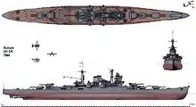 Suzuya (鈴谷) was the third of four vessels in the Mogami class of heavy cruisers in the Imperial Japanese Navy.[4] She was named after the Suzuya river on Karafuto (Sakhalin).