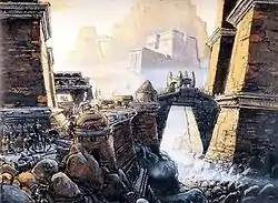 Also in 1984 he produced designs for director Jeremy Kagan who was attempting to adapt René Barjavel's novel La Nuit des temps (The Ice People). Due to difficulties experienced by the film's Iranian producer as a result of the Islamic revolution in Iran, the film was never made. Some of Mézières' production art was published in Les Extras de Mézières.[1][16]