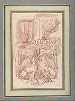 Ango surviving oeuvre consists entirely of drawings. Four paintings were recorded, but they are now lost. Julien described Ango as a painter as well. Most of his surviving drawings are of notable paintings and decorations in Roman churches and palaces; however, some attest a knowledge of Naples. In fact, on March 18, 1761, Ango and Jean-Honoré Fragonard were given permission to draw copies of the artwork in the gallery of Capodimonte, in Naples. Many of Ango's drawings are copies after Old Masters' paintings and sculptures, such as that of an untraced painting by Guercino, and Duquesnoy's Tomb of Ferdinand van den Eynde. In some instances, his copies are after some contemporary artists, and he also reworked counterproofs of drawings.[1][2]