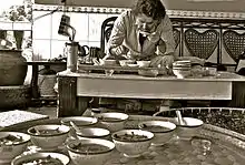 The relationship between mountains, indigenous cultures, and tea has informed much of Fuchs' work, with a particular focus on Asia. After considerable time spent between the Himalayas and Southwestern China, he became compelled by the people and their narratives surrounding the old tea caravans. This interest culminated in a journey to retrace the path of the world's highest ancient trade route, from the perspective of the first Westerner to do so.[3] Fuchs brought due attention to this story in his book The Ancient Tea Horse Road: Travels with the Last of the Himalayan Muleteers (2008), where he documents the 6000 km, 7.5 month journey.[2]