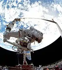 Hoffman made five flights as a Space Shuttle astronaut, including the first mission to repair the Hubble Space Telescope in 1993, when the orbiting telescope's flawed optical system was corrected.[1] Trained as an astrophysicist, he also flew on the 1990 Spacelab Shuttle mission that featured the Astro-1 ultraviolet astronomical observatory in the Shuttle's payload bay. Over the course of his five missions he logged more than 1,211 hours and 21.5 million miles in space. He was also NASA's first Jewish astronaut, and the second Jewish man in space after Soviet cosmonaut Boris Volynov.[2]