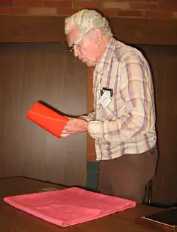 Andrus died of cancer at age 89.[36] When asked when did he first meet Jerry Andrus, magician James Randi said, "That's hard to say, Jerry was one of those guys I thought I always knew... I met him in New York City in the company of Martin Gardner.[37] Jerry was the most honest man I ever knew...he could not lie about anything...He was a genius, a fine man and, yes, I miss him every day."[38] In a similar vein, Ray Hyman quoted Andrus as saying, "He was legendary for his honesty. He would never tell a lie or anything." [39] In his last phone conversation with Randi, Andrus said, "I've been every place I've ever wanted to go, I've met everyone I've wanted to meet...I've never done this before, and you don't get a second chance out of it, I'm told. I'm observing really interesting things. I wish they wouldn't fill me with so many chemicals because I want to make some notes".[40]