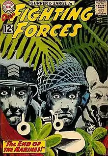 At DC, then the leading comic-book company and the home of Batman and Superman, Grandenetti drew some of everything that was not a superhero. Beginning with Western Comics #27 (Sept. 1951), Grandenetti did Western comics (All-Star Western), crime fiction (Racket Squad in Action, Gang Busters, Mr. District Attorney), science fiction (Strange Adventures), and mystery-suspense (House of Mystery), but made his mark as one of DC's signature war comics artists, drawing hundreds of anthological stories and covers in a dozen years' worth of such titles as All-American Men of War, G.I. Combat, Our Army at War, Our Fighting Forces, and Star Spangled War Stories.[6]
