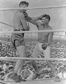 Willard followed up this victory by facing contender Luis Ángel Firpo on July 12, 1923.[13] The fight was held at Boyle's Thirty Acres in New Jersey, in front of more than 75,000 spectators. Willard was knocked out in the eighth round, and then permanently retired from boxing.