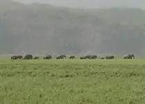 Two villages situated on the southern boundary were shifted to the Firozpur–Manpur area situated on Ramnagar–Kashipur highway during 1990–93; the vacated areas were designated as buffer zones.[27] The families in these villages were mostly dependent on forest products.[27] With the passage of time, these areas began to show signs of ecological recovery.[27] Vines, herbs, grasses and small trees began to appear, followed by herbaceous flora, eventually leading to natural forest type.[27] It was observed that grass began to grow on the vacated agricultural fields and the adjoining forest areas started recuperating.[27] By 1999–2002 several plant species emerged in these buffer zones.[27] The newly arisen lush green fields attracted grass eating animals, mainly deer and elephants, who slowly migrated towards these areas and even preferred to stay there throughout the monsoon.[27]