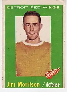 James Stewart Hunter Morrison (born October 11, 1931) is a Canadian former professional ice hockey defenceman, coach and scout. He played 704 National Hockey League games for the Boston Bruins, Toronto Maple Leafs, Detroit Red Wings, New York Rangers and Pittsburgh Penguins. A fast skating, offensive minded defenseman, he would score many goals and assists during his career, a rarity for a blueliner.