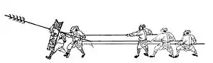 - 2 men with multiple tip spears (lang xian shou 狼筅手)