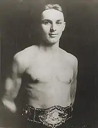 Joe Stecher (April 4, 1893 – March 29, 1974), sometimes spelled Joe Stetcher, was an American professional wrestler and three-time World Heavyweight Wrestling Champion. Known for his ferocity, tremendous leg strength and extensive knowledge of the sport, Stecher is considered to be one of the greatest wrestlers of all time.[1][2] In 2000, Stecher was inducted into the George Tragos/Lou Thesz Professional Wrestling Hall of Fame.