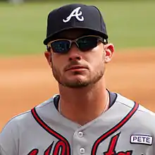 He later transferred to California State University, Long Beach, where he played for the Long Beach State Dirtbags baseball team.[4] In 2009, he played collegiate summer baseball with the Chatham Anglers of the Cape Cod Baseball League.[5] He was drafted by the Atlanta Braves in the sixth round of the 2010 MLB draft and signed with the Braves for $125,000.[6][7] Terdoslavich had a successful season in 2011 for the high-A Lynchburg Hillcats in the Braves minor league system (he hit a Carolina League record 52 doubles)[8] and was sent to the Surprise Saguaros of the Arizona Fall League,[9] making the Fall League All Star team.[10] He started the 2012 season playing with the Triple-A Gwinnett Braves, making the jump from A to AAA.[11] He split the 2012 season between Gwinnett and the Double-A Mississippi Braves.