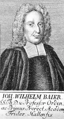 Johann Wilhelm Baier (11 November 1647 – 19 October 1695) was a German theologian in the Lutheran scholastic tradition. He was born at Nuremberg, and died at Jena.