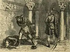 On 10 February 1306 Robert the Bruce participated in the killing of John Comyn before the high altar of the Greyfriars Church in Dumfries.[14] Legend, possibly apocryphal, says Robert the Bruce called Comyn to a meeting, stabbed him and rushed out to tell Roger de Kirkpatrick. Kirkpatrick and Sir Robert Fleming went in to finish the job uttering: "You doubt! I mak siccar!" ("I make sure!") Fleming exited holding the head of Comyn, stating "Let the deed shaw." ("Let the deed show.")